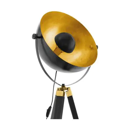 Beschreibung Eglo Stehlampe Covaleda Holz Stahl Schwarz Gold | IP20 - Geeignet für 1x E27