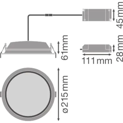 Beschreibung Ledvance LED Downlight Alu DN200 25W 2370lm 100D - 865 Tageslichtweiß | 215mm - IP44