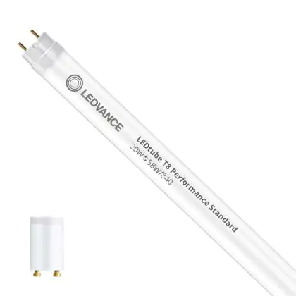 Die T8 LED-Röhren von Ledvance gibt es in verschiedenen Farbtemperaturen: Extra Warmweiß (2.700 K und weniger), Warmweiß (3.000 K), Kaltweiß (4.000 K) und Tageslichtweiß (6.500 K). Diese Röhre strahlt ihr Licht in 4000K - Kaltweiß aus.