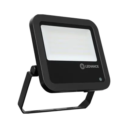 Der Ledvance LED-Scheinwerfer 65W 4000K 8000lm IP65 ist in stilvollem Schwarz gehalten und zeichnet sich durch seinen Abstrahlwinkel von 100°x100° aus. Dank der hohen Robustheit kann die Leuchte problemlos in Außenbereichen eingesetzt werden.