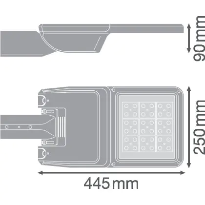 Beschreibung Ledvance LED-Straßenbeleuchtung Flex klein RV25ST Grau 13W 1780lm 25x145D - 740 Kaltweiß | IP66 – Asymmetrisch