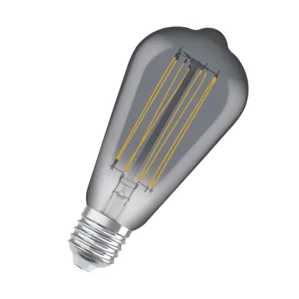 Die Ledvance Vintage 1906 LED E27 Edison Smoke 11W 500lm - 818 Extra Warmweiß | Dimmbar - Ersatz Für 42W ist eine effiziente E27 LED-Lampe mit Retrodesign und der perfekte Ersatz für Ihre konventionellen 42W Lampen mit E27. Zudem strahlt sie Licht in der Farbtemperatur 1800K - Extra Warmweiß aus und punktet durch eine lange Lebensdauer.