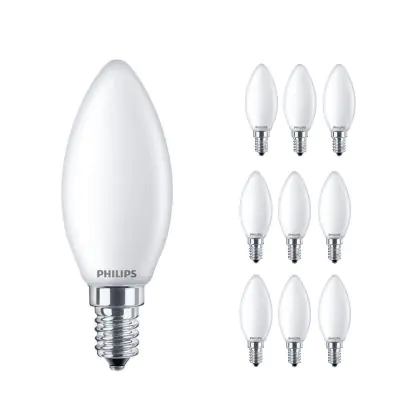 Die Mehrfachpackung 10x Philips Corepro LED Kerze E14 Matt 4.3W 470lm - 827 Extra Warmweiß | Ersatz für 40W ist eine effiziente E14 LED-Lampe und der perfekte Ersatz für Ihre konventionellen 40W Lampen mit E14-Sockel. Zudem strahlt sie Licht in der Farbtemperatur aus und punktet durch eine lange Lebensdauer.