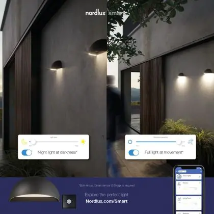 Beschreibung Nordlux Arcus Smart LED Wandleuchte Grau 9.5W 440lm 148D – 827 – Extra Warmweiß | Dimmbar – IP54