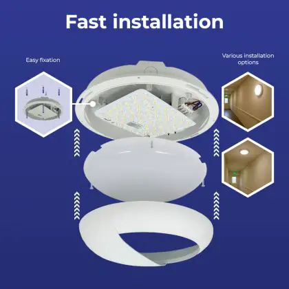 Beschreibung Noxion LED-Wand- und Deckenleuchte Pro V2 12/16/20W 2400lm - 830-840-865 CCT | 325mm - IP65 - 3 Stunden Notlicht + Augenlid Ring Weiß