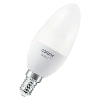Die Osram Smart+ Kerze E14 Matt 4.9W 470lm - 827-865 Abstimmbares Weiß | Zigbee Dimmbar - Ersatz Für 40W ist eine effiziente E14 LED-Lampe und der perfekte Ersatz für Ihre konventionellen 40W Lampen mit E14-Sockel. Zudem strahlt sie Licht in der Farbtemperatur aus und punktet durch eine lange Lebensdauer.