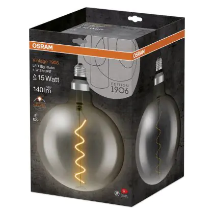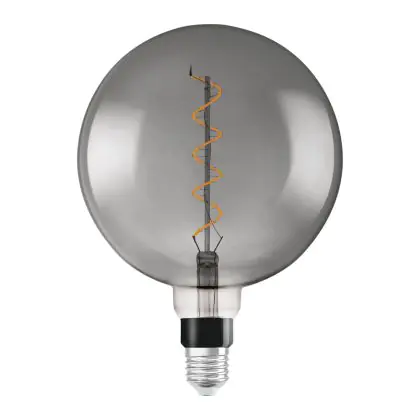 Die Osram Vintage 1906 LED E27 Globe Fadenlampe Smoke 200mm 5W 110lm - 818 Extra Warmweiß | Ersatz für 25W ist eine effiziente E27 LED-Lampe mit Retrodesign und der perfekte Ersatz für Ihre konventionellen 25W Lampen mit E27. Zudem strahlt sie Licht in der Farbtemperatur 1800K - Extra Warmweiß aus und punktet durch eine lange Lebensdauer.