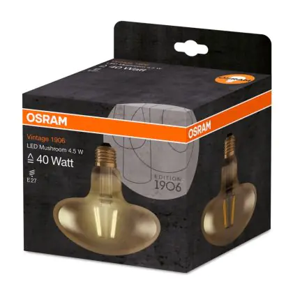 Diese moderne Osram Vintage 1906 LED E27 Mushroom strahlt eine extra warmweiße Farbtemperatur aus. Die Lichtfarbe von 2.500 Kelvin hat einen besonders hohen Rotanteil und kreiert somit eine behagliche Stimmung mit viel Gemütlichkeit.