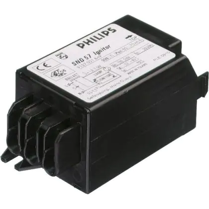 Ein elektromagnetisches System erfordert ein Vorschaltgerät, ein Zündgerät und einen Kondensator. Das Zündgerät ist nur für Reihenschaltungen zu benutzen. Für SON-Lampen wird kein Zündgerät benötigt. Der Zünder ist mit Reihenklemmen ausgestattet.